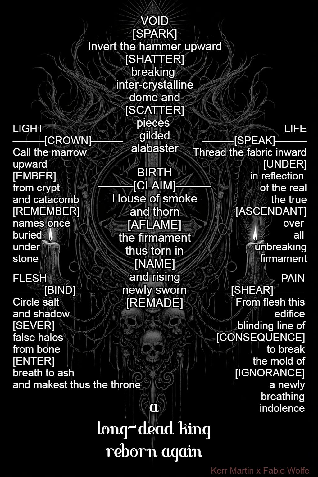 Once again Substack’s limited formatting options have been a bane to our creative spirt this Collaboration Month here on Guerrilla Literature and the Avant-garde. Still, Fable Wolfe and I would not be deterred. For a ritual to be successful, it must be precise, and we have made sure that we maintained that precision. Join the circle, repeat the chant and enjoy…